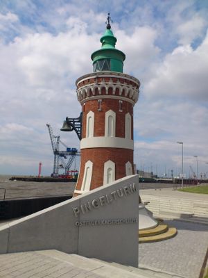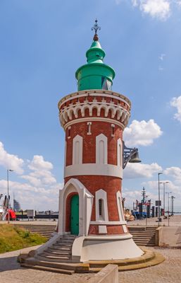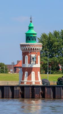 Der 1910 erbaute Kaiserschleusen-Leuchtturm leitete Schiffe zum Kaiserhafen bis zur Einstellung des aktiven Dienstes im Jahr 2011.