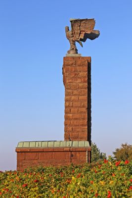 Das Denkmal umfasst einen 15 Meter hohen Pfeiler mit einem 4,8 Meter großen Bronzeadler, der am Kieler Fjord positioniert ist.