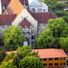 Die Klinik St. Marienstift umfasst mehrere Gebäude mit einem vierstöckigen neugotischen Bau, umgeben von Gärten und modernen medizinischen Einrichtungen.