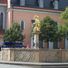 Der St.-Georgsbrunnen zeigt einen achteckigen Sockel mit einer Sandsteinfigur des Sankt Georg, der einen Drachen in goldener Rüstung besiegt.