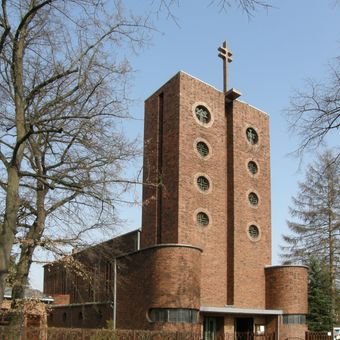 Der Kirchenbau begann im Juli 1929 auf dem ehemaligen Gelände des Restaurants Zum wilden Eber, die Einweihung folgte im August 1930.