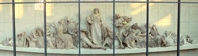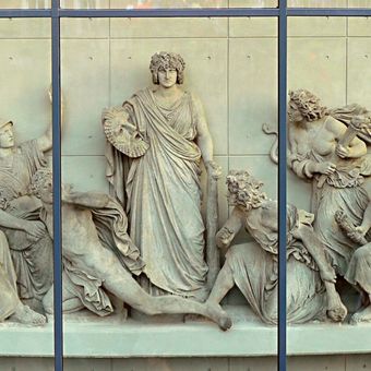 Das Burgtheater verfügt über große Glasfassaden und beherbergt 15 Sandsteinfiguren entlang seiner Außenwände, die zeitgenössisches Design mit historischen Elementen verbinden.