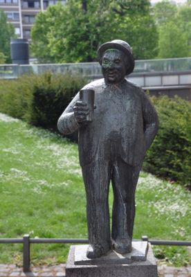 Die Figur stellt einen traditionellen Weintrinker mit einem Mainzer Stange Glas dar, der die Verbindung der Bevölkerung zum Wein zeigt.