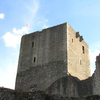 Besucher erreichen die Ruine über Waldwege vom Parkplatz aus, mit einem kleinen Kiosk, der an ersten Sonntagen und Feiertagen von April bis Oktober geöffnet ist.