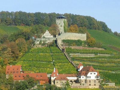 Der fünfeckige Turm Langhans bietet Ausblicke über das Bottwartal und beherbergt ein Restaurant sowie eine Aussichtsplattform.