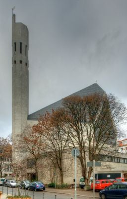 Die Kirche wurde 1963 bis 1964 von Architekt Gottfried Böhm gebaut und ersetzte ein früheres Gebäude, das im Zweiten Weltkrieg beschädigt wurde. Der Neubau markierte einen Wendepunkt in der Architektur der Nachkriegszeit und prägte den Stil des Stadtteils neu.