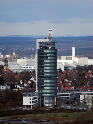 Mit seiner Antenne erreicht der TDS Turm 103 Meter und ist damit das höchste Geschäftsgebäude im Raum Heilbronn.