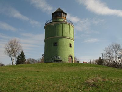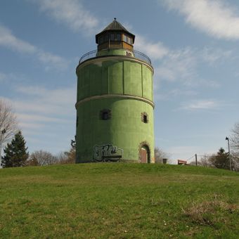 Wasserturm Neundorf, Wasserturm mit Aussichtsplattform; weithin sichtbarer schlichter Turm von landschaftprägendem Wert
