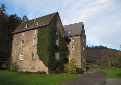 Schloss Brüninghausen ist ein Herrenhaus aus zwei verbundenen Häusern im Ortsteil Ohle in Plettenberg, Nordrhein-Westfalen. Die Anlage zeigt klassische Merkmale einer westfälischen Schlossarchitektur mit separaten Wohnbereichen, die durch Übergänge miteinander verbunden sind.