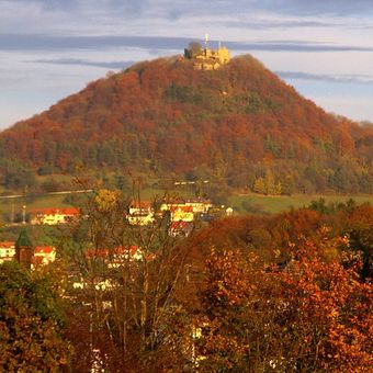Die Küssaburg ist eine Burgruine in Bechtersbohl, die sich auf etwa 634 Metern Höhe befindet und über das Rheintal und den südlichen Schwarzwald blickt. Die Reste zeigen noch die Struktur einer mittelalterlichen Befestigung mit sichtbaren Mauern und Fundamenten, die über viele Jahrhunderte in die Landschaft eingebettet sind.