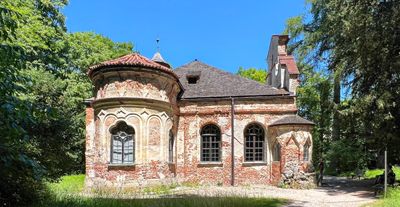 Der Zugang erfolgt über den nördlichen Teil des Schlossparks, wo die Kapelle zwischen Bäumen liegt und Besucher müssen zu Fuß vom Hauptgebäude aus dorthin gehen. Man sollte festes Schuhwerk tragen, da die umliegenden Wege uneben sein können und die Umgebung naturbelassen ist.