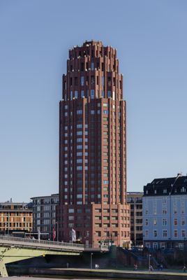 Die Konstruktion des Gebäudes fand zwischen 1998 und 2002 statt und wurde von Architekt Hans Kollhoff entworfen. Er integrierte dabei Designelemente aus der New Yorker Architektur der 1920er Jahre in das Frankfurter Stadtbild.