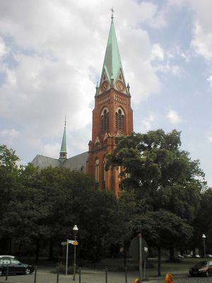 Architekt Max Spitta vollendete den Bau dieser Backsteinkirche 1893, während einer Zeit erheblicher städtebaulicher Entwicklung in Berlin.