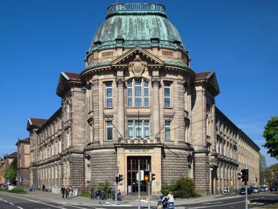 Rathaus West ist ein imposantes Verwaltungsgebäude in Karlsruhes Weststadt mit charakteristischen Sandsteinfassaden und Neo-Renaissance-Details. Es steht prominently am Mühlburger Tor und prägt mit seiner Größe und Architektur das Erscheinungsbild des nördlichen Verwaltungsviertels.