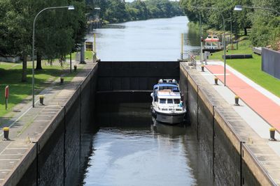 Die Oldenburg Schleuse operiert am Küstenkanal und ermöglicht Schiffen die Navigation zwischen verschiedenen Wasserständen im norddeutschen Wasserstraßensystem.