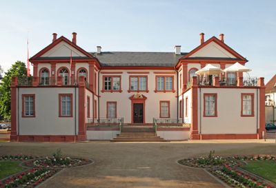 Schloss Fechenbach ist ein dreiflügeliges Barockschloss in Dieburg mit einem Mansarddach und einem zentralen Dachreiter über dem Haupteingang. Das Gebäude beherbergt heute ein Museum, das Ausstellungen zur Regionalgeschichte zeigt und verschiedene Räume für Besucher zugänglich macht.