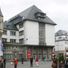 Das Sparkassengebäude verbindet moderne Architektur mit regionalen Materialien, mit Muschelkalkplatten und Kunststein an den unteren Geschossen.