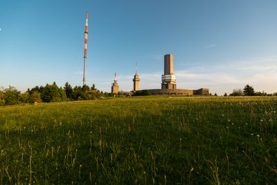 Die Sendeanlagen auf dem Großen Feldberg bestehen aus mehreren Funktürmen, die sich auf dem 879 Meter hohen Gipfel erheben und technische Signale über die gesamte Region verbreiten. Die Anlage umfasst unterschiedliche Antennensysteme, die nebeneinander stehen und verschiedene Rundfunk- und Telekommunikationsdienste bereitstellen.