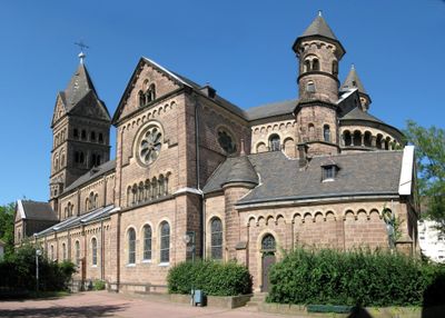 St. Marien ist eine Pfarrkirche in Neunkirchen mit Architektur des Romanesque Revival aus den 1880er Jahren. Das Gebäude folgt einem Basilika-Grundriss mit Kreuzform, bestehend aus einem Mittelschiff und zwei Seitenschiffen.