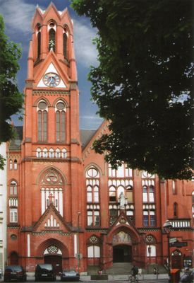 Ernst Schwartzkopff entwarf die Kirche, die am 20. Dezember 1905 mit einem ursprünglich 71 Meter hohen Turm eröffnet wurde.