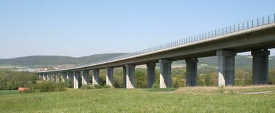 Die Talbrücke Lanzendorf erstreckt sich über 1093 Meter durch ein Tal und trägt sechs Fahrspuren der Bundesautobahn 9 in einer maximalen Höhe von 36 Metern.