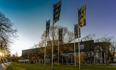 Das Kleist Forum erstreckt sich über 2.600 Quadratmeter und umfasst einen Theatersaal, Foyer, Galerien und Konferenzräume für Veranstaltungen.