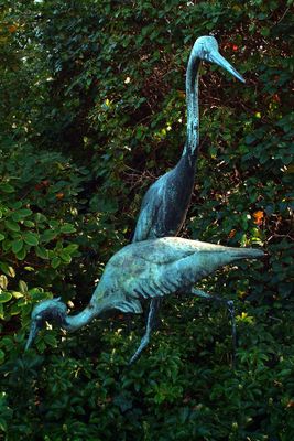Die Fischreiher-Skulptur steht im Freien und stellt die natürliche Form des Wasservogels durch detaillierte Bronzearbeiten dar.