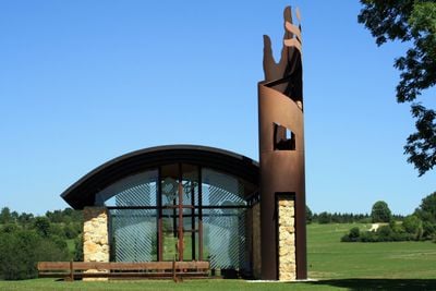Die Kapelle verfügt über ein kupfernes Regenbogendach, das von zwölf Balken getragen wird und die zwölf Stämme Israels darstellt.