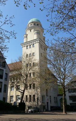 Der Ostmannturm erhebt sich 34 Meter hoch mit einer Kupferkuppel und ist in ein dreistöckiges Fabrikgebäude in der Hanns-Bisegger-Straße 7 integriert.