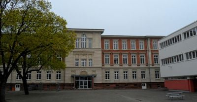 Das dreistöckige neoklassizistische Gebäude verfügt über eine erneuerte Dachkonstruktion und erweiterte Mensa in der Goethestraße 10a.