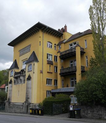 Das Kunstlerhaus Dresden-Loschwitz ist ein dreistöckiges Wohngebäude im Kunstnouveaustil mit großen Atelierfenstern, flachem Dach und industriellen Designelementen aus der Wende zum 20. Jahrhundert. Die Struktur beherbergt Atelierräume und Wohnungen, die original erhalten sind und weiterhin für künstlerische Aktivitäten genutzt werden.