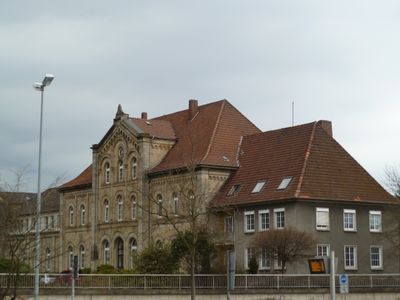 Der Hannoversche Bahnhof verfügt über ausgedehnte Gleisanlagen mit Wartungsgebäuden entlang der Sandbachstraße.