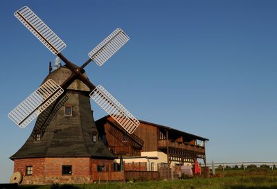 Das Bauwerk verbindet niederländische Holländermühlen-Designelemente aus dem 17. Jahrhundert mit regionalen deutschen Anpassungen an die Ostsee-Wetterbedingungen.