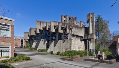 Der Architekt Hans Buchmann arbeitete mit dem Bildhauer Josef Rikus und dem Theologen Wilhelm Nyssen zusammen, um dieses Kirchengebäude zu schaffen, das 1968 eröffnet wurde.