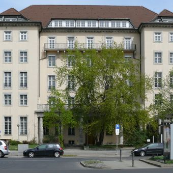 Das Ottilie von Hansemann Haus zeigt neoklassizistische Architektur mit einem Haupteingang zur Otto-Suhr-Allee und traditionellen Elementen an der Fassade.