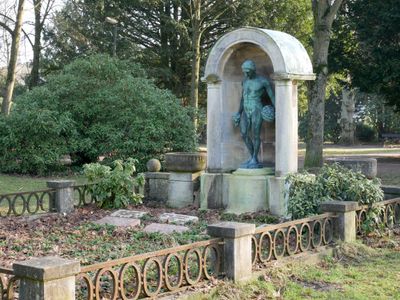 Ein Kriegerdenkmal der '77er' steht im Zentrum, während Böschungsgräber die Überreste von Industriellen und Honoratioren beherbergen.