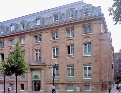 Das ehemalige Bankgebäude beherbergt heute ein Galeria Kaufhof Warenhaus mit Denkmalschutz für Fassade und Dachfläche.