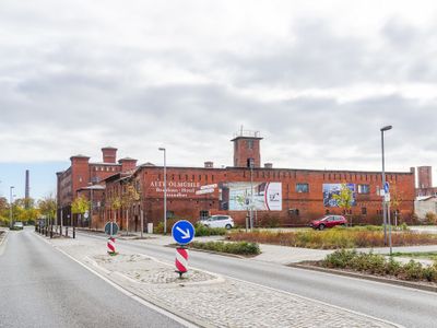 Der Märkische Ölmühle Komplex umfasst Backsteinfabrikgebäude, ein Labor, oktaedrische Ölspeicher und eine Fabrikantenvilla an der Elbe.