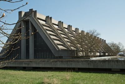 Walter Gropius vollendete diesen Industriebau 1970 als sein letztes architektonisches Projekt in Zusammenarbeit mit The Architects Collaborative und Alex Cvijanovic.