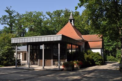 Die Friedhofsverwaltung öffnet montags, mittwochs, donnerstags und freitags von 8:00 bis 12:00 Uhr, mit 30 Parkplätzen am Haupteingang.