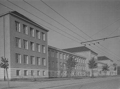 Nach der Zerstörung des Campus im Zweiten Weltkrieg entwickelte Richard Konwiarz 1950 einen räumlichen Entwicklungsplan, der den Wiederaufbau des Geländes entlang der Zellescher Weg vorsah. Walter Henn entwarf die charakteristische Architektur mit Backsteinwänden und Schieferdächern, die diese Wiederaufbauphase prägt.