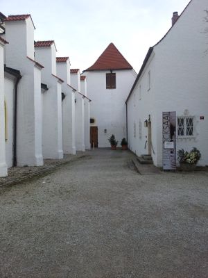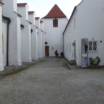 Domsakristei, Sakristei des Freisinger Doms (Oberbayern). Zweigeschossiger Putzbau mit Halbwalmdach, untere Sakristei zweischiffig mit Rotmarmorsäulen, 1448, obere Sakristei, zweischiffig mit Säulen, im Kern wohl gleichzeitig, im 17. Jh. erneuert; mit Ausstattung.