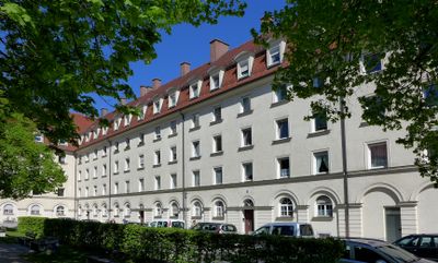 Mietshausgruppe, barocke Anklänge, 1925–26 von Hans Steiner; im Anschluss an die Kirche sowie nördliche Platzbegrenzung; mit Thalkirchner Straße 130.
