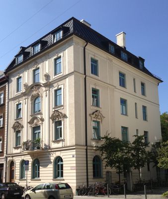 Mietshaus, neubarock, mit reichem Stuckdekor, 1890–91 von Johann Grübel.