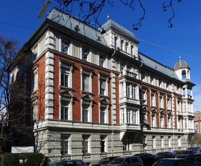 Mietshaus, neurenaissance, mit Erker, reich gegliedert, 1888 von Carl Wilhelm Warmbach; bildet eine Einheit mit Nymphenburger Straße 95.