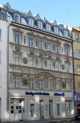 Mietshaus, neurenaissance, reich gegliedert, mit Stuckdekor, um 1870/80.