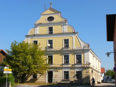 Gasthof, zweigeschossiges Gebäude mit Steildach, in Ecklage, südlich geschweifter Giebel mit reicher Putzgliederung, wohl 18. Jahrhundert.