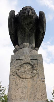 Prinz-Heinrich-Kaserne, adlerskulptur auf hohem Sockel (transloziert);
