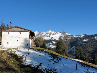 Demelbauer, zwiehof; Almhütte, Flachsatteldach-Blockaufsatz über Bruchstein-Erdgeschoss mit traufseitiger Laube, bezeichnet 1791 und 1792;