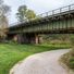 Eisenbahnbrücke in Vorra, Eisenträgerbrücke über die Pegnitz mit genietetem, hängendem Fachwerk und einseitigem Vollwandträger, Widerlager und Auflager aus Granitmauerwerk, 1877, 1899, Umbau 1931